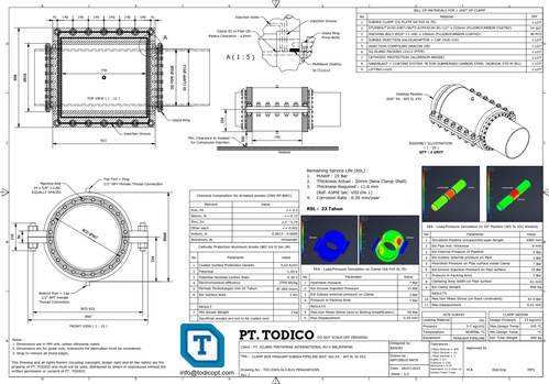 TODICO Split sleeve repair clamps are manufactured in two halves so the clamp can fit around the repair location without needing to cut the pipe. The sealing arrangement provides full containment around the damaged section of pipe (leak sealing only). Our clamps are application specific and designed, fabricated to the exact requirements of the operator and repair location. This bespoke service ensures a fully configurable solution of the highest quality.